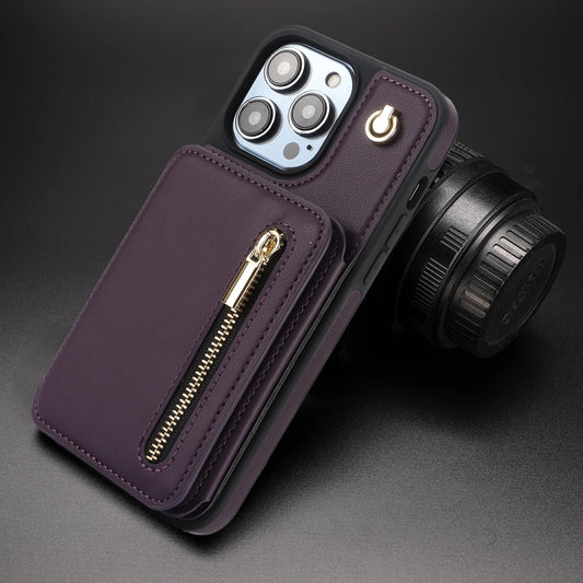 [New Colors] Luxury Cross Body Zipper Card Wallet iPhone Case